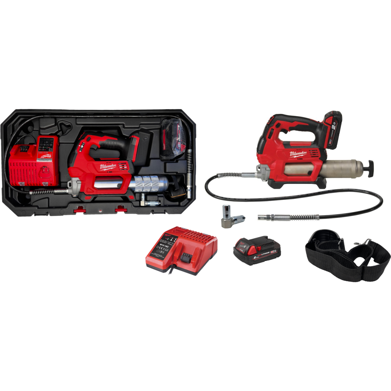 SMAROWNICA AKUMULATOROWA MILWAUKEE W ZESTAWIE Z AKUMULATOREM 2,0 AH ŁADOWARKĄ I WALIZKĄ M18 GG-201C 4933440490